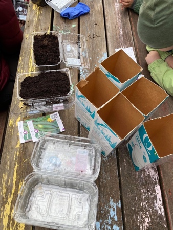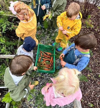 Barna er med i hele prosessen fra å så frøet til å høste grønnsakene.