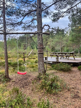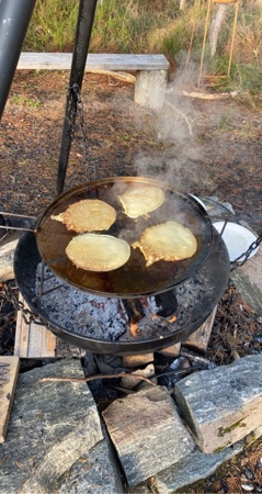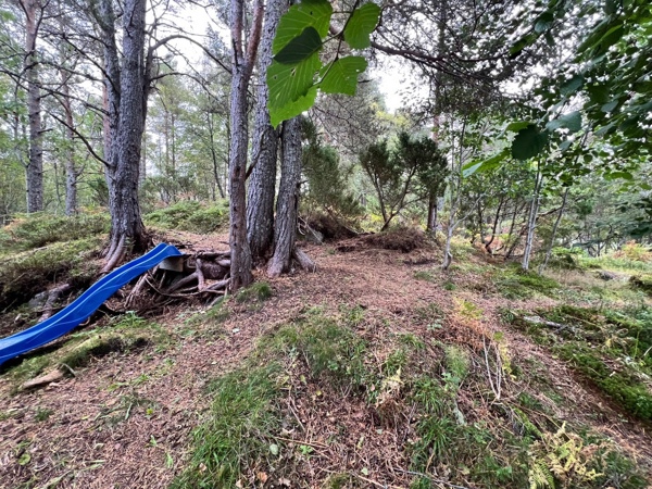 Vi bruker denne plassen veldig mye, både storbarn og småbarnsavdelingen. Den ligger rett ved barnehagen og er lett tilgjengelig for oss alle. Den korte avstanden er super læring for de minste, til å kunne gå på tur selv. Vi har en fin bålplass hvor vi tenner bål og tar lunsjen ute. På bålet griller vi gjerne pølser, ostesmørbrød eller steker lapper.